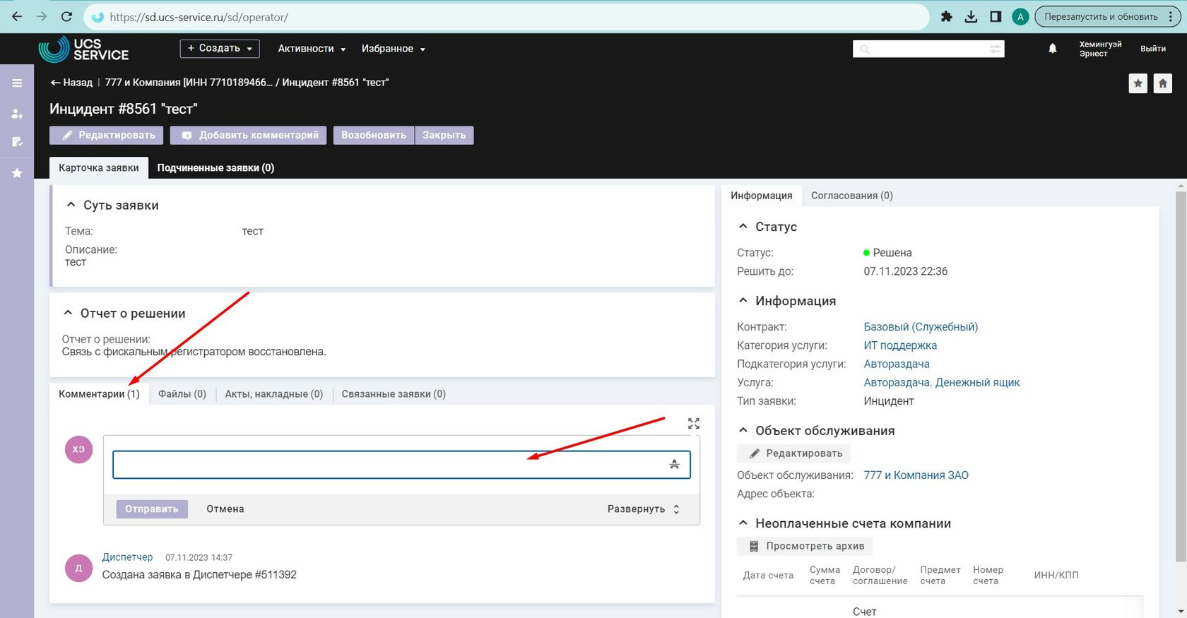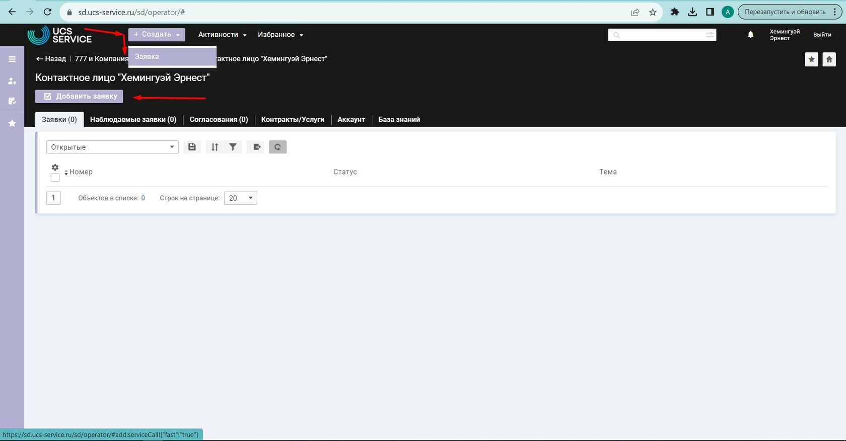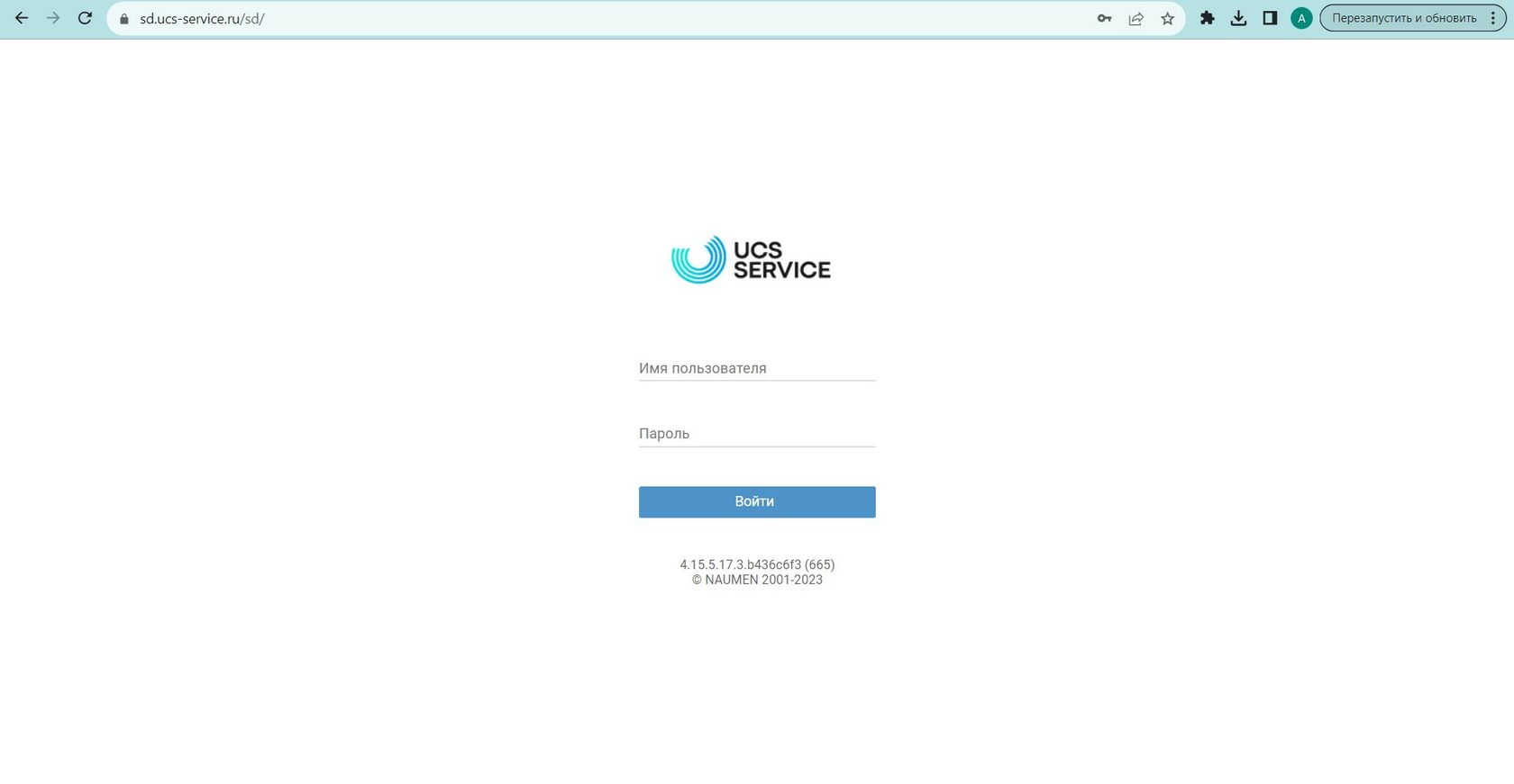 Перейдите в Личный кабинет Service Desk Перейдите по ссылке: https://sd.ucs-service.ru/sd/ Для прохождения авторизации в сервисе или восстановления ранее полученного доступа необходимо обратиться в отдел технической поддержки по телефону: +7 (495) 777-01-20 или написав соответствующий запрос на электронную почту: support@ucs-service.ru